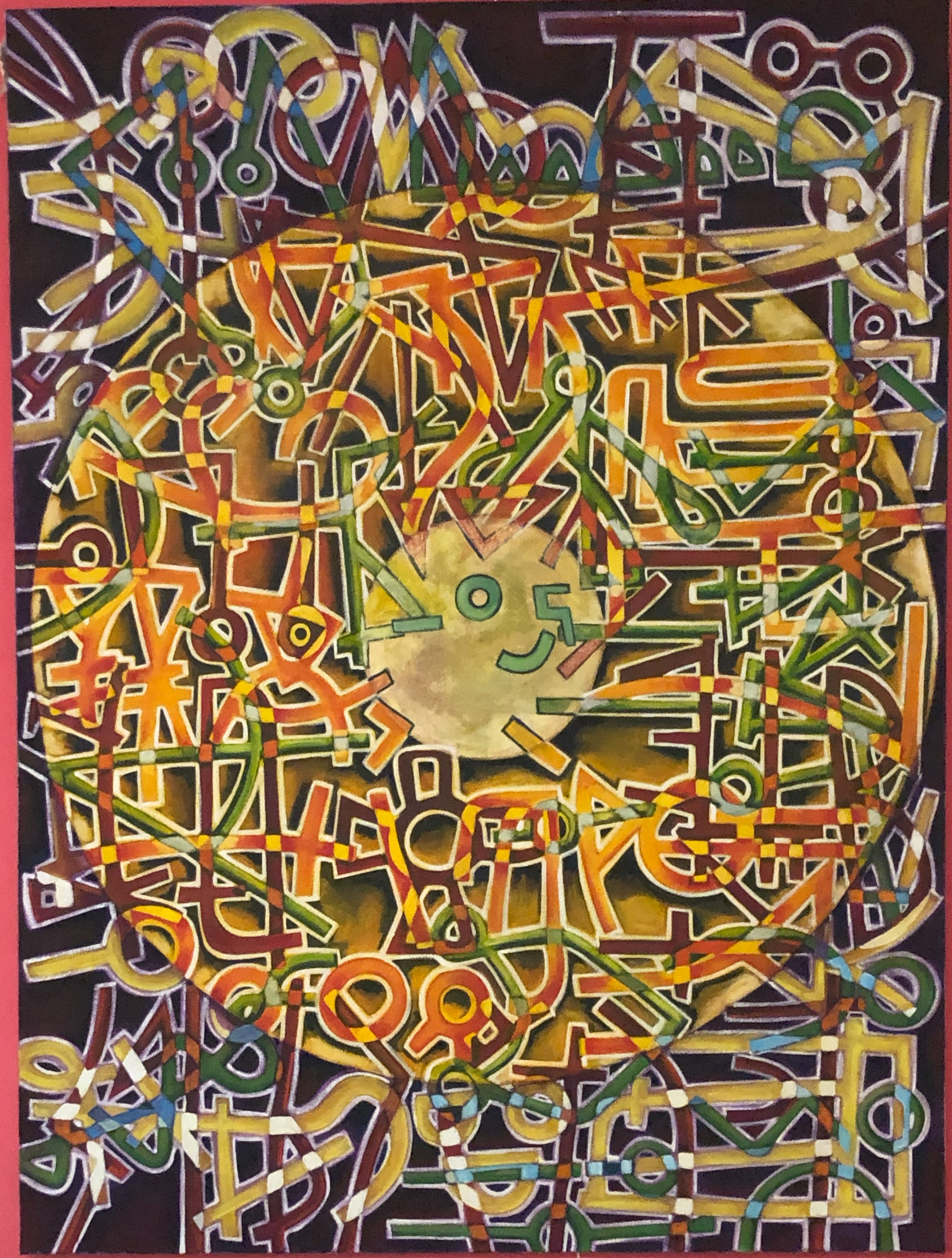 Blary geht zurück zu den Ursprüngen der menschlichen Kommunikation – zu Hieroglyphen und archaischen Schriftzeichen. Doch er kopiert sie nicht; er transformiert sie. Er löst diese Ur-Formen aus ihrem historischen Kontext und setzt sie neu zusammen, um einen zeitgenössischen Code zu entwickeln.
